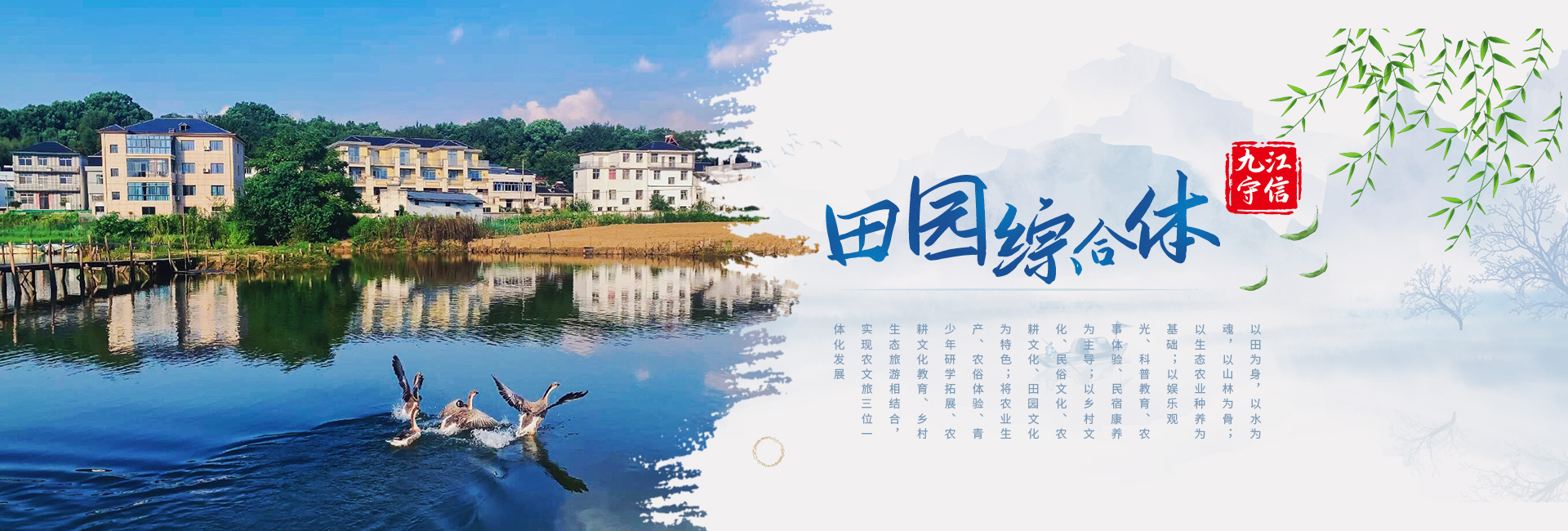 九江守信田園綜合體以田為身,以水為魂,以山林為骨;以生態(tài)農業(yè)種養(yǎng)為基礎;以娛樂觀光、科普教育、農事體驗、民宿康養(yǎng)為主;以鄉(xiāng)村文化、民俗文化、農耕文化、田園文化為特色;將農業(yè)生產(chǎn)、農俗體驗、青少年研學拓展、農耕文化教育、鄉(xiāng)村生態(tài)旅游相結合,實現(xiàn)農文旅三位一體化發(fā)展,成為生態(tài)性、主題性、復合型農莊公園模式...